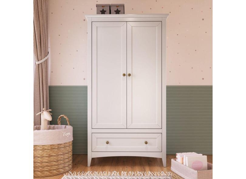 Guarda Roupa Infantil 2 Portas em Madeira Maciça Branco