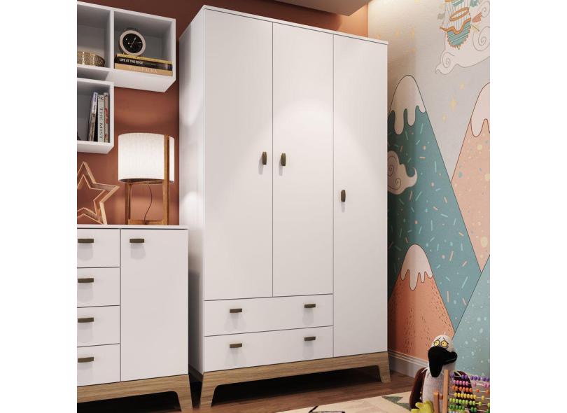 Guarda-Roupa Infantil 3 Portas 2 Gavetas Branco - Completa Móveis