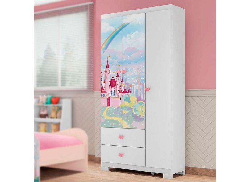 Guarda Roupa Infantil 3 Portas 2 Gavetas Floresta Encantada Branco - Móveis Estrela Baby