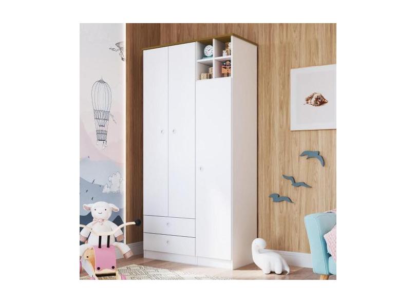 Guarda Roupa Infantil 3 Portas 2 Gavetas House Art In Móveis Branco