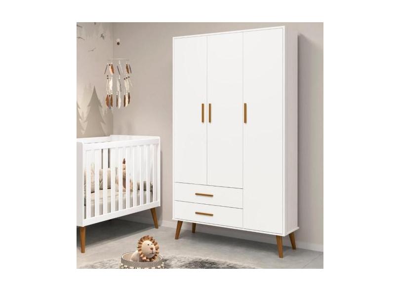 Guarda Roupa Infantil 3 Portas 2 Gavetas Isis Móveis Reller Branco