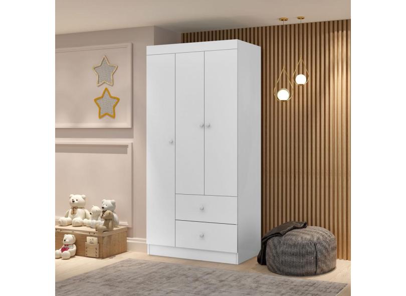 Guarda-Roupa Infantil 3 Portas e 2 Gavetas - Catatau - Flex-Branco/Rosa/Azul/Nature