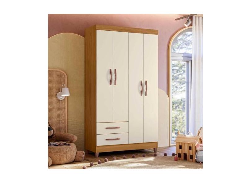 Guarda Roupa Infantil 4 Portas 2 Gavetas Mágico Carvalho Grife/off White