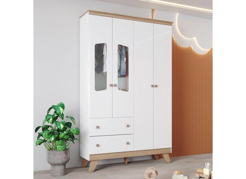 Guarda Roupa Infantil 4 Portas 2 Gavetas Retrô Theo Espresso Móveis Branco/Jequitibá HP