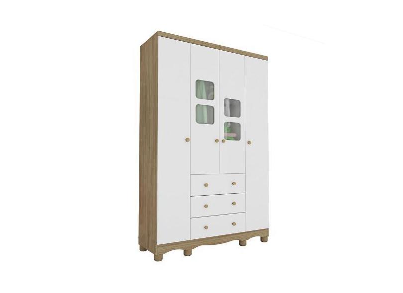 Guarda Roupa Infantil 4 Portas 3 Gavetas Uli Baby Home Branco/Branco B