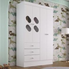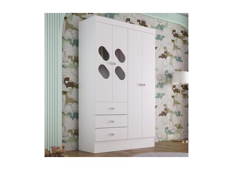 Guarda Roupa Infantil 4 Portas com Janela 2 Gavetas Maya Rodial, Branc