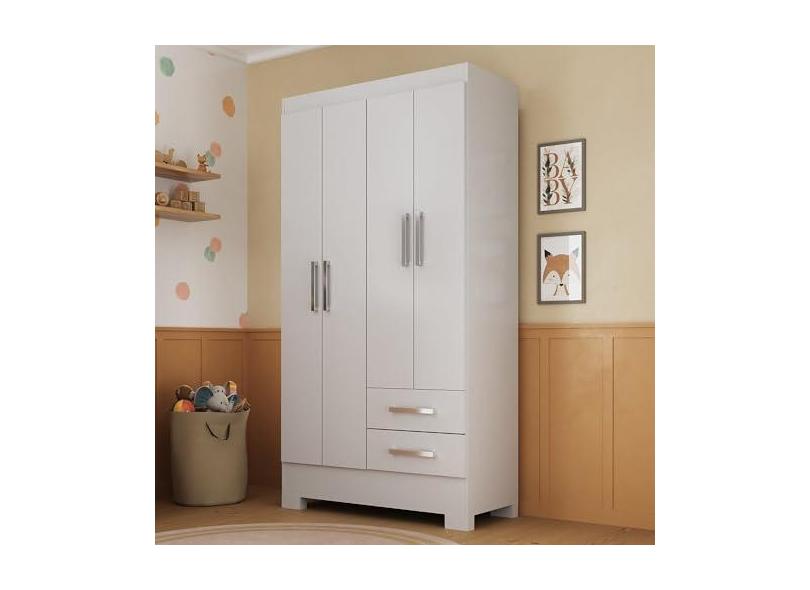 Guarda Roupa Infantil 4 Portas e 2 Gavetas Amy Espresso Móveis Branco
