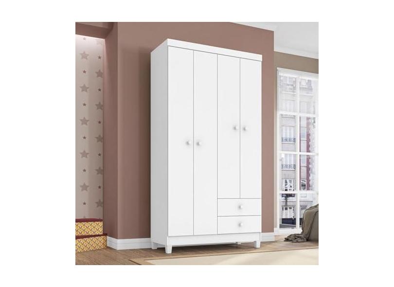 Guarda-roupa Infantil 4 Portas e 2 Gavetas Bilu Branco/Rosa/Azul