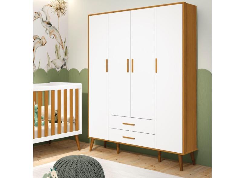 Guarda Roupa Infantil 4 Portas Isis Branco/Savana