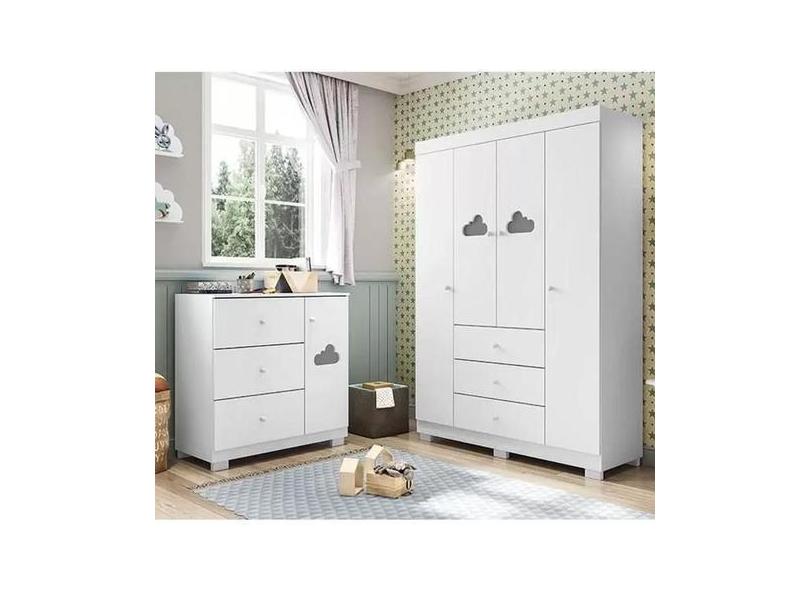 Guarda Roupa Infantil 4 Portas Mais Cômoda 3 Gavetas 1 Porta Em Mdf -