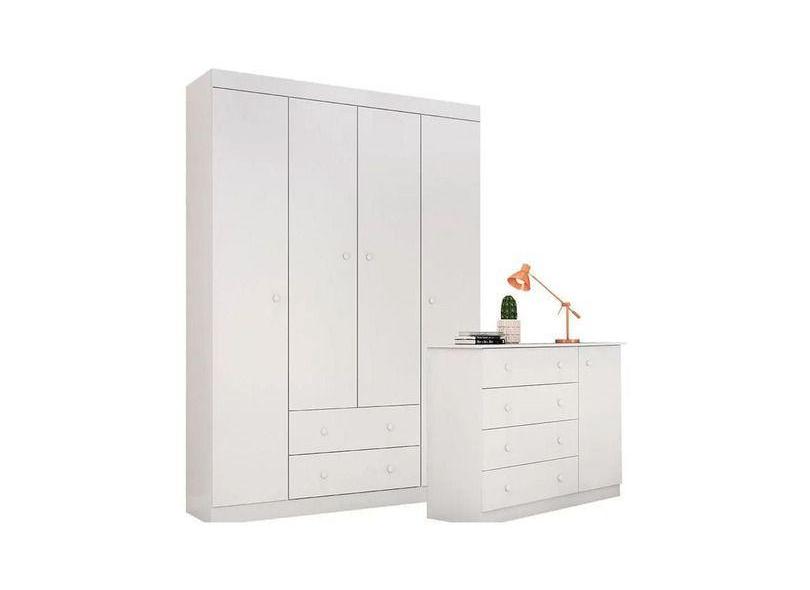 Guarda Roupa Infantil 4 Portas Mais Cômoda Sapateira Branco Brilho -