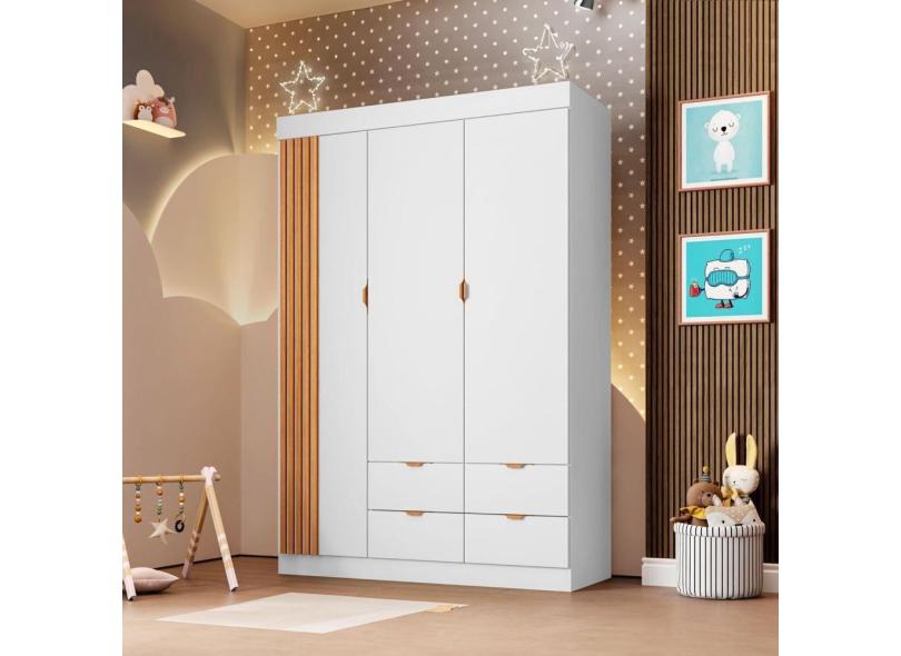 Guarda-Roupa Infantil Ayla 3 Portas 4 Gavetas 100% mdf Branco