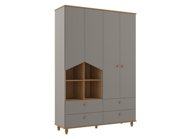 Guarda Roupa Infantil Casinha 4 Portas e 4 Gavetas - Permóbili Baby Fendi/Nature