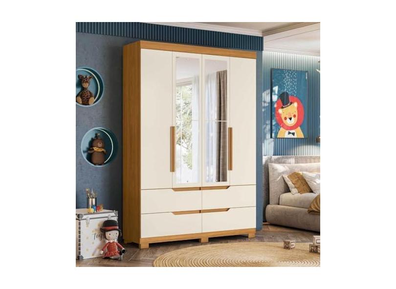 O menor preço encontrado no Brasil para Guarda Roupa Infantil com Espelho 4 Portas 4 Gavetas Circus Carvalho Grife/off White atualmente é R$ 1.199,99.