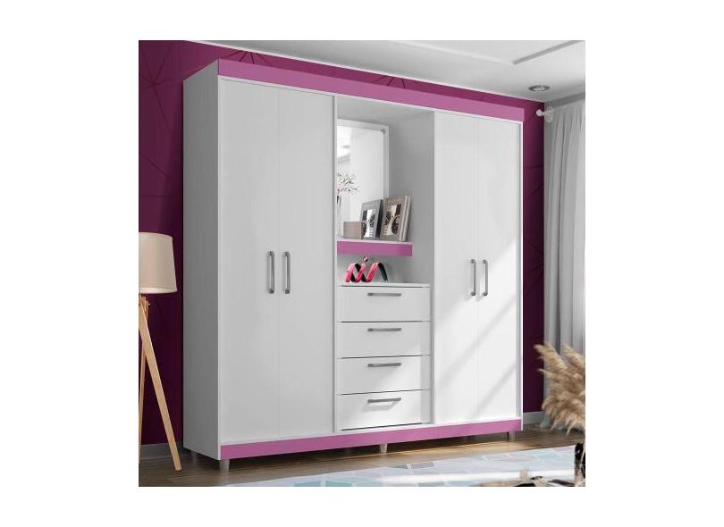 Guarda Roupa Infantil Com Espelho Capelinha Branco Lilas 22185 Araplac