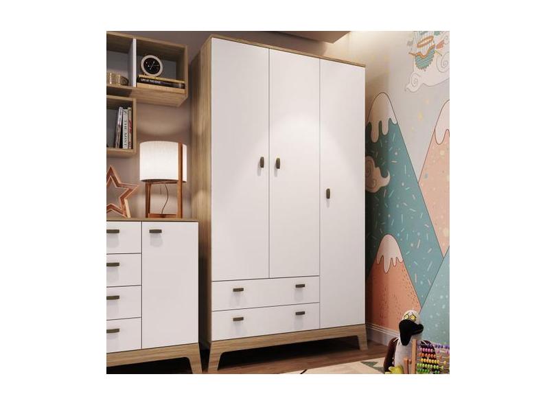 Guarda-Roupa Infantil Favo De Mel 3 Portas 2 Gavetas Itapuã/Branco - C