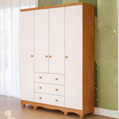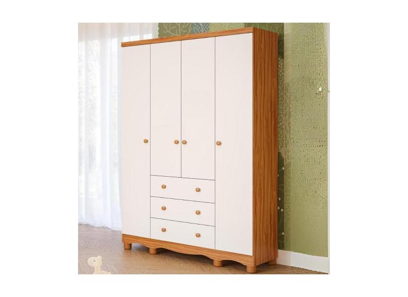 Guarda Roupa Infantil Junior 4 Portas Lisa 3 Gavetas 100% MDF Móveis P
