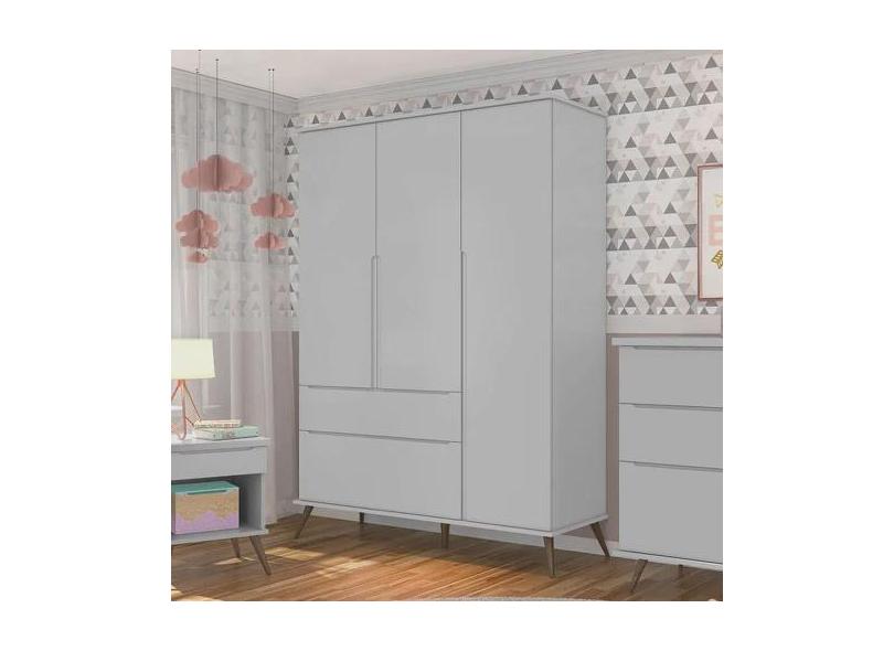 Guarda Roupa Infantil Melinda com 3 Portas Cinza Phoenix Baby