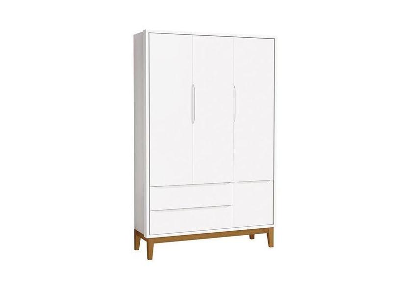 Guarda Roupa Infantil New Classic 3 Portas Branco Com Pés Madeira Rel