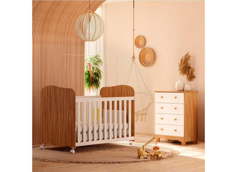 Guarda-Roupa Infantil Peroba Duda Plus com 92 cm de largura + Cômoda com 4 Gavetas e 65,1 cm de largura + Berço Americano