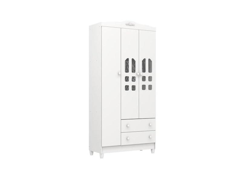 Guarda Roupa Infantil Provençal 3 Portas com Gavetas Lisa Branco Brilho Carolina Baby
