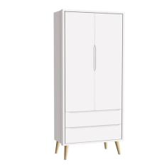 Guarda Roupa Infantil Theo 2 Portas Branco Acetinado Com Pés Madeira N