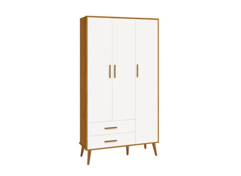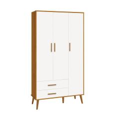 Guarda Roupa Isis Retrô 3 Portas 2 Gavetas Branco Fosco/ Savana Fosco -Reller