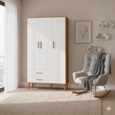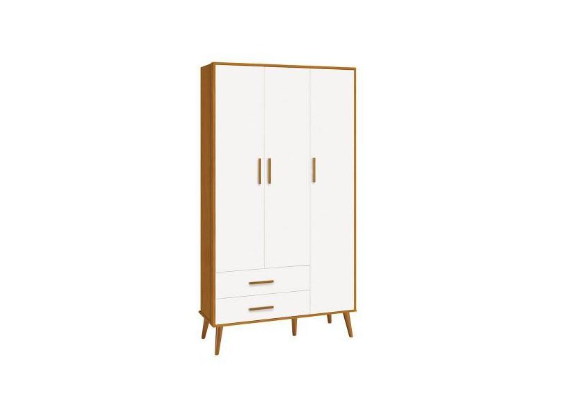 Guarda Roupa Isis Retrô 3 Portas 2 Gavetas Branco Fosco/ Savana Fosco