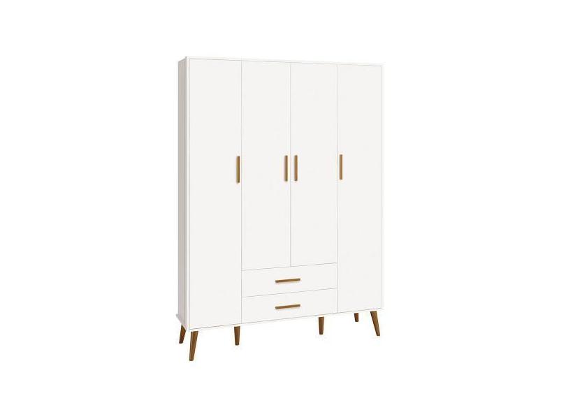 Guarda Roupa Isis Retrô 4 Portas 2 Gavetas Branco Fosco -Reller