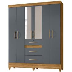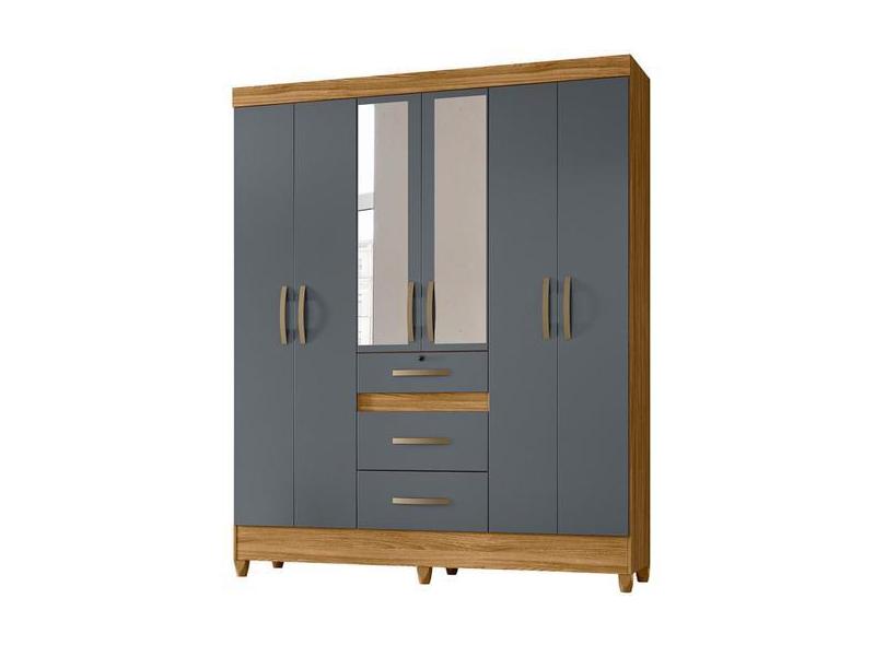 Guarda Roupa Itatiba 165cm 6 Portas Freijó Cinza Com Espelho Moval