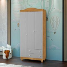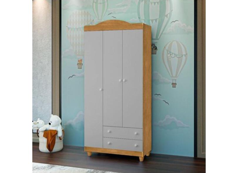 Guarda Roupa Lara 3 Portas E 2 Gavetas Nature / Cinza