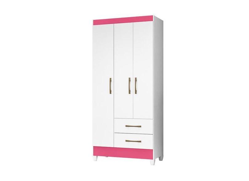 Guarda Roupa Lima 103cm 4 Portas Branco Rosa Flex Moval