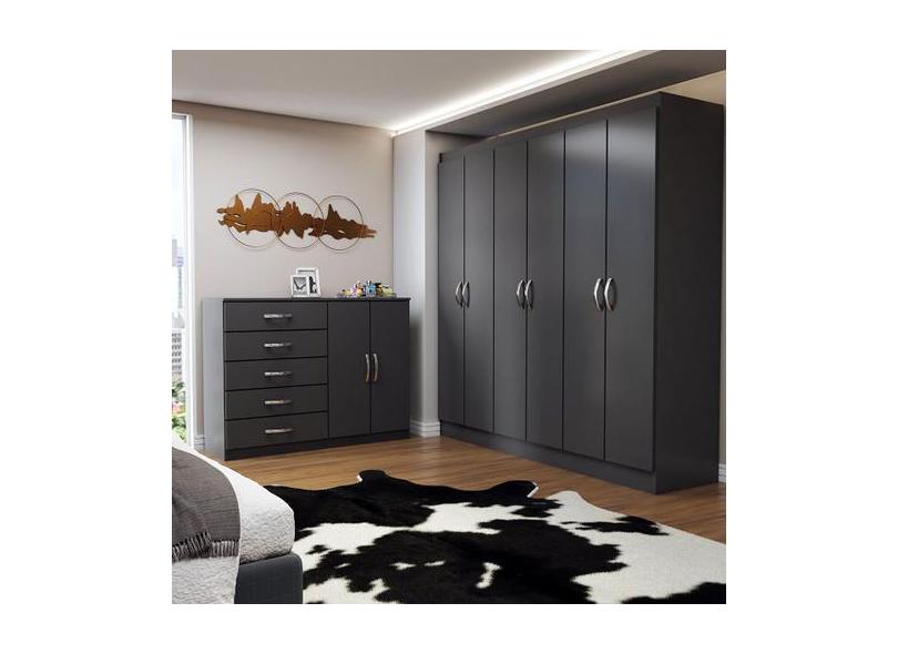 Guarda-Roupa Luna 6 Portas 2 Gavetas com Cômoda 2 Portas 5 Gavetas Pre