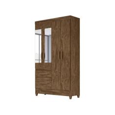 Guarda Roupa Madri 110cm 4 Portas Castanho Wood Com Espelho Moval