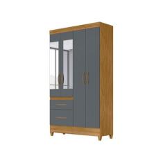 Guarda Roupa Madri 110cm 4 Portas Freijó Cinza Com Espelho Moval