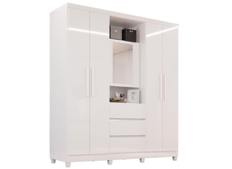 Guarda Roupa Mdp 3 Portas 3 Gavetas 8 Pés Com Espelho Branco