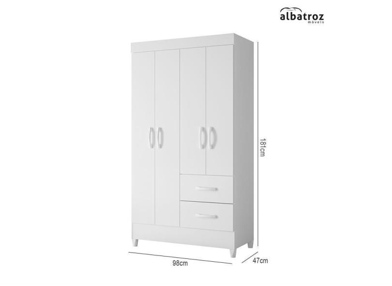 Guarda Roupa Mobi 4 Portas e 2 Gavetas - Móveis Albatroz Branco Fosco