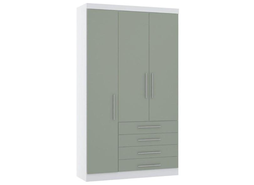 Guarda Roupa Modulado 132cm 3 Portas E 4 Gavetas Alpes Luciane Móveis Branco Pf Com Verde Pf