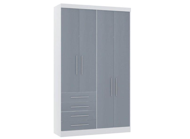 Guarda Roupa Modulado 134,50cm 4 Portas E 4 Gavetas Alpes Luciane Móveis Branco Pf Com Grey Sky Pf