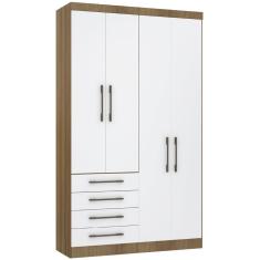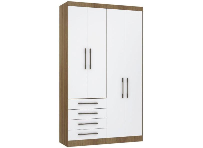 Guarda Roupa Modulado 134,50cm 4 Portas E 4 Gavetas Paris Luciane Móveis Avelã Pf Com Branco Pf