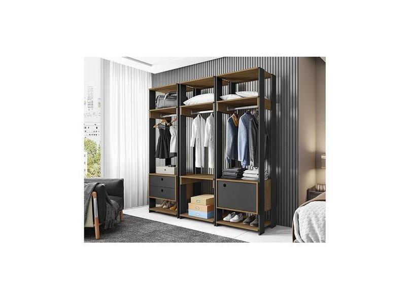 Guarda Roupa Modulado Ambiente Titan 3 Peças Preto Freijó - Móveis Leã