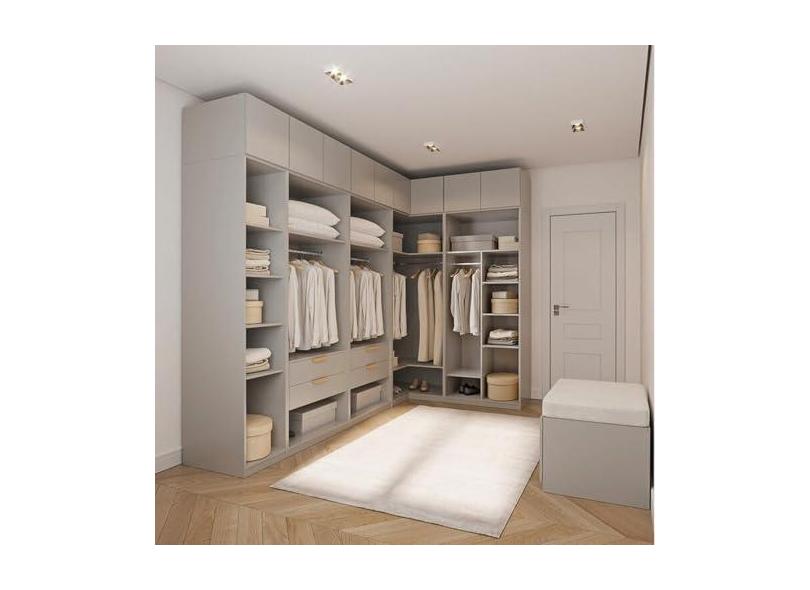 Guarda-roupa Modulado de Canto 10 Peças 9 Portas Jade Cabecasa Madeiramadeira Cinza Urbano