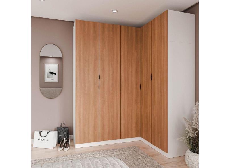 Guarda Roupa Modulado de Canto 5 portas 3 Peças Hera CabeCasa MadeiraMadeira Branco Geada/Louro