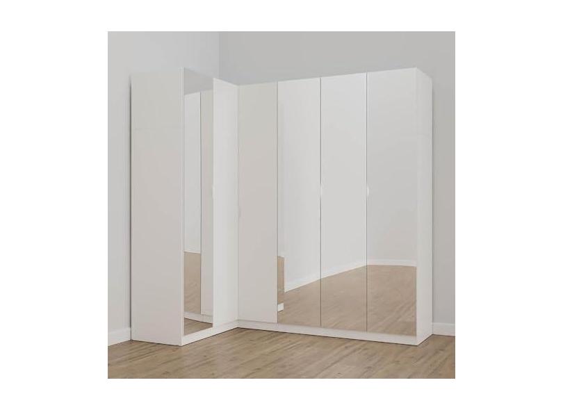 Guarda Roupa Modulado de Canto com Espelho 6 Portas 3 Peças Hera Cabecasa Madeiramadeira Branco Geada/cromado