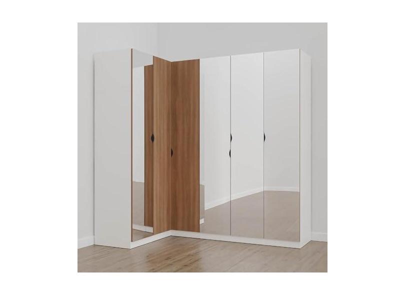 O menor preço encontrado no Brasil para Guarda Roupa Modulado de Canto com Espelho 6 Portas 3 Peças Hera Cabecasa Madeiramadeira Branco Geada/louro/preto atualmente é R$ 8.144,97.
