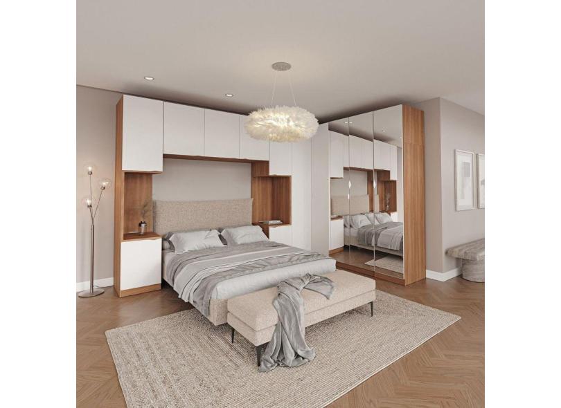 Guarda Roupa Modulado de Canto Hera 6 Peças com Espelho e 2 Mesas de Cabeceira CabeCasa MadeiraMadeira Branco Geada/Louro