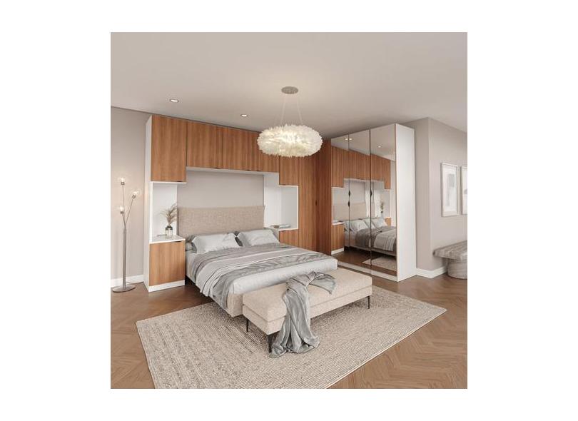 Guarda Roupa Modulado De Casal Com Espelho 12 Portas 6 Peças E 2 Mesas