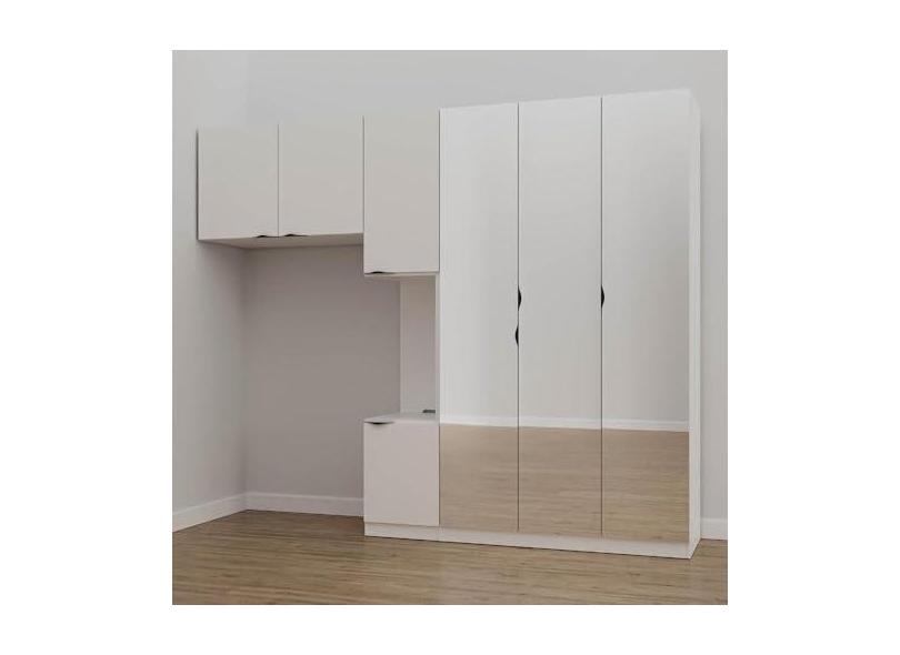 O menor preço encontrado no Brasil para Guarda Roupa Modulado de Solteiro com Espelho e Mesa de Cabeceira Direita 7 Portas 3 Peças Hera Cabe Branco Geada/preto atualmente é R$ 4.076,46.