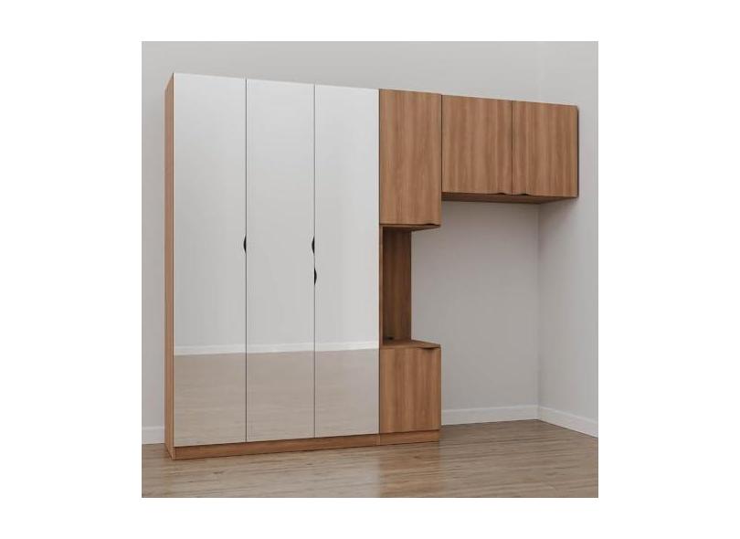 O menor preço encontrado no Brasil para Guarda Roupa Modulado de Solteiro com Espelho e Mesa de Cabeceira Esquerda 7 Portas 3 Peças Hera Cab Louro/preto atualmente é R$ 4.949,98.