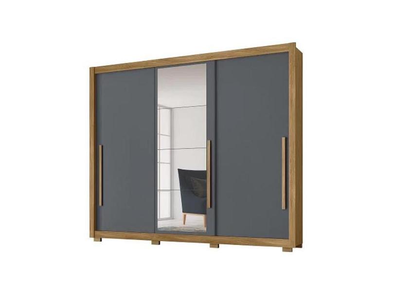 Guarda Roupa Mônaco 3 Portas De Correr Com Espelho Freijó/Cinza - Pr